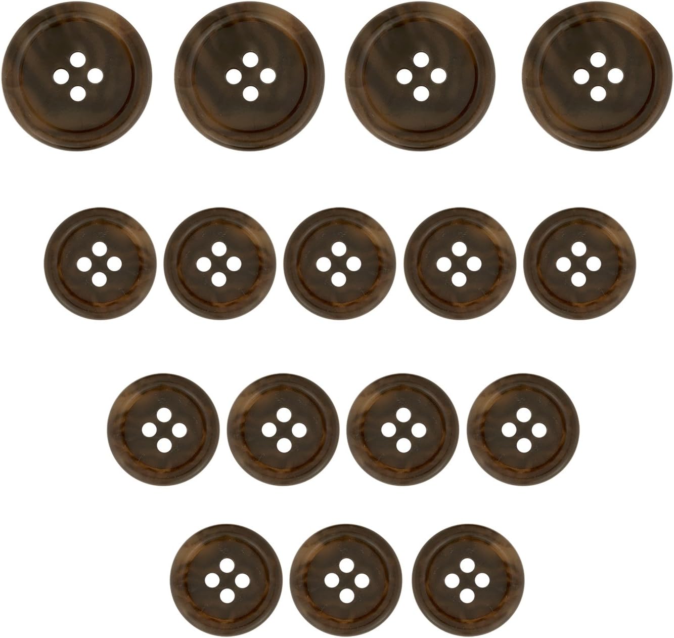 ButtonMode Regular Suit Buttons 16pc Set Includes 4 Buttons Measuring 20mm (3/4 Inch) for Jacket Front, 12 Buttons Measuring 15mm (9/16 Inch) for Jacket Sleeves and Pants, Beige Khaki, 16-Buttons