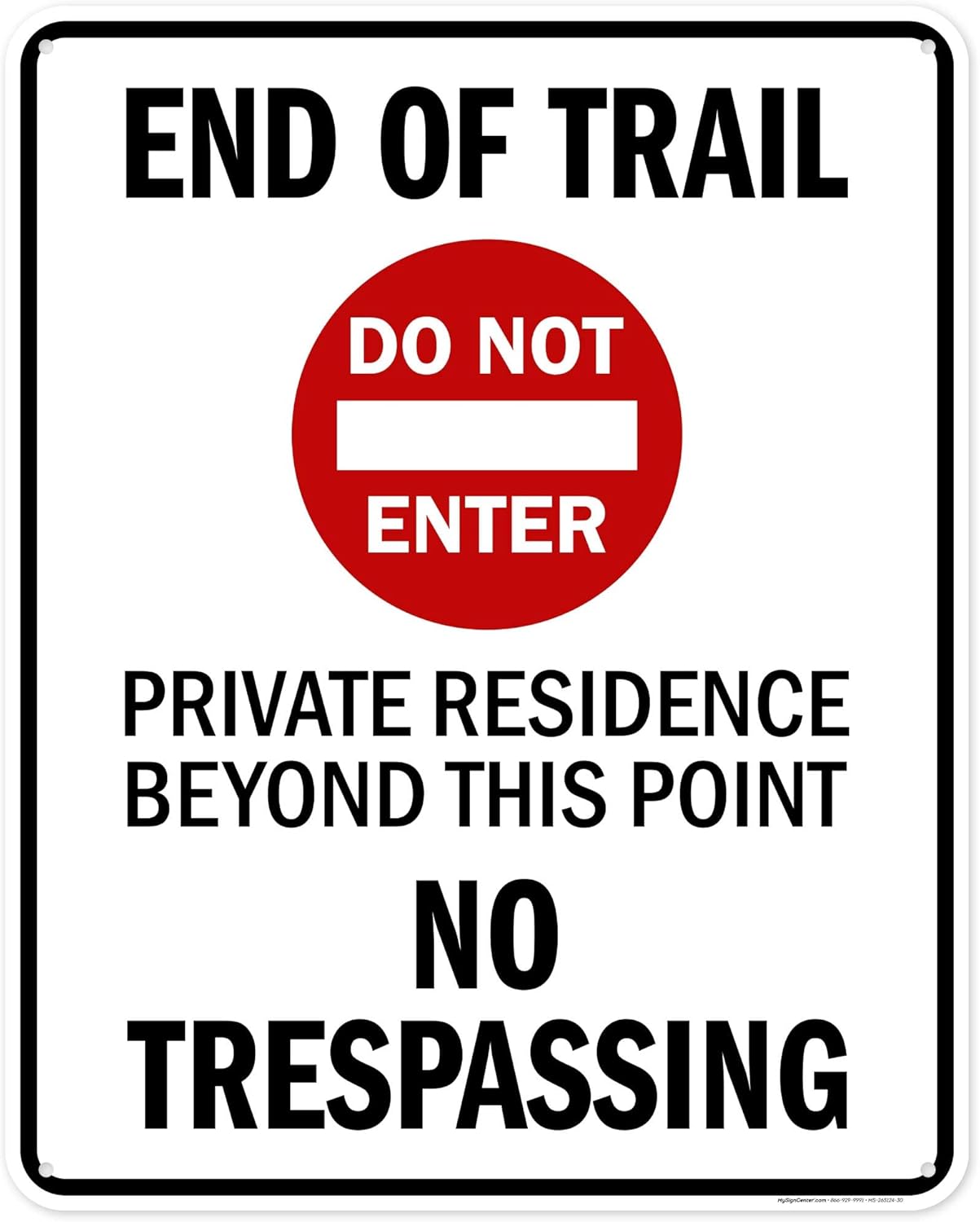 End Of Trail Private Residence Beyond This Point With Do Not Enter Symbol Sign, 18x24 Inches, 55 mil thick HDPS (high density polystyrene), Made in USA by My Sign Center