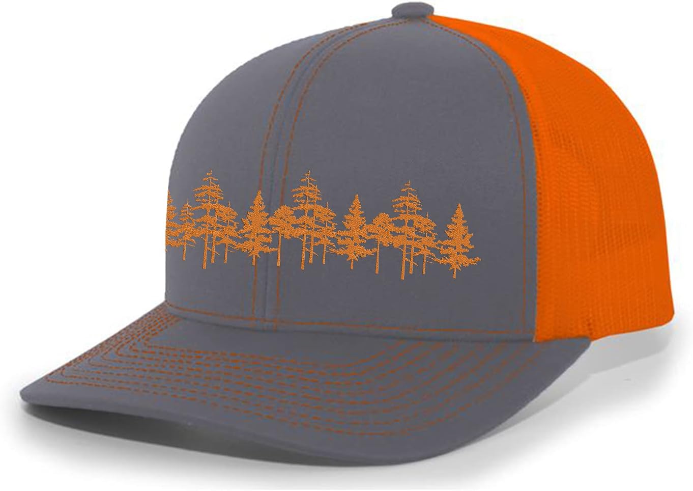 This hat features a forest of Tamarack trees embroidered on the front of this adjustable snapback hat. Keep your eyes shielded from the sun's rays while looking fly. The tried-and-true Trucker Snapback is the definition of trucker mesh royalty. Features a mid-profile shape, pre-curved visor and a cotton sweatband. Made of cotton/polyester front and nylon mesh backing. This cap will be sure to reign supreme as a snapback classic. One Size Fits Most thanks to the Adjustable Snap-back Strap. Our professional embroiderers are masters of detail. Each Heritage Pride hat is custom embroidered right here in the USA. We use state-of-the-art equipment to ensure that each hat we embroider is of the highest quality. Our hats make a great gift idea for any occasion!