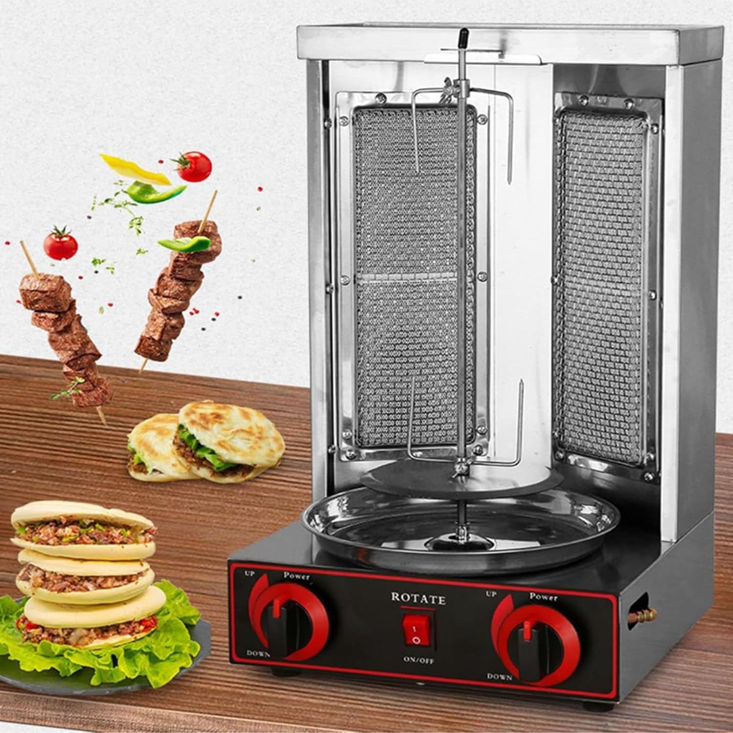 Merkmale:- Es bietet die Vorteile von Sauberkeit und Hygiene, vermeidet die durch Holzkohlefeuer entstehenden Dämpfe, ist einfach zu bedienen, heizt schnell auf und die maximale Temperatur kann 300 °C erreichen.- Legen Sie einfach das vorbereitete Fleisch hinein, schalten Sie den Schalter ein und stellen Sie die Temperatur ein. Warten Sie dann eine Weile, bis ein duftender Grill entsteht.- Das Tablett kann verhindern, dass Öltröpfchen den Boden berühren, wodurch es leicht zu reinigen ist.- Nehmen Sie einen automatisch um 360° drehbaren Grill an.Unique Designs:- Separate oil collection tray to prevent oil from directly contacting the base- Height-adjustable forks for fixing the meat with different sizes- The whole machine is made of stainless steel, easy to wipe, grease and maintain- There's a sink on the top for heat dissipation, which can also be used as a temporary storage rackSpecifications:Voltage: 110V/220VColor: Silver, BlackFrame Material: Stainless SteelHeating Method: LPGItem Dimension: 300*300*490mm/510*300*490Weight: 8KG/15KGPaketliste:1 x Vertical Rotisserie Oven GrillIf you have any questions about the product, please contact us in time, we will answer your doubts within 24 hours!