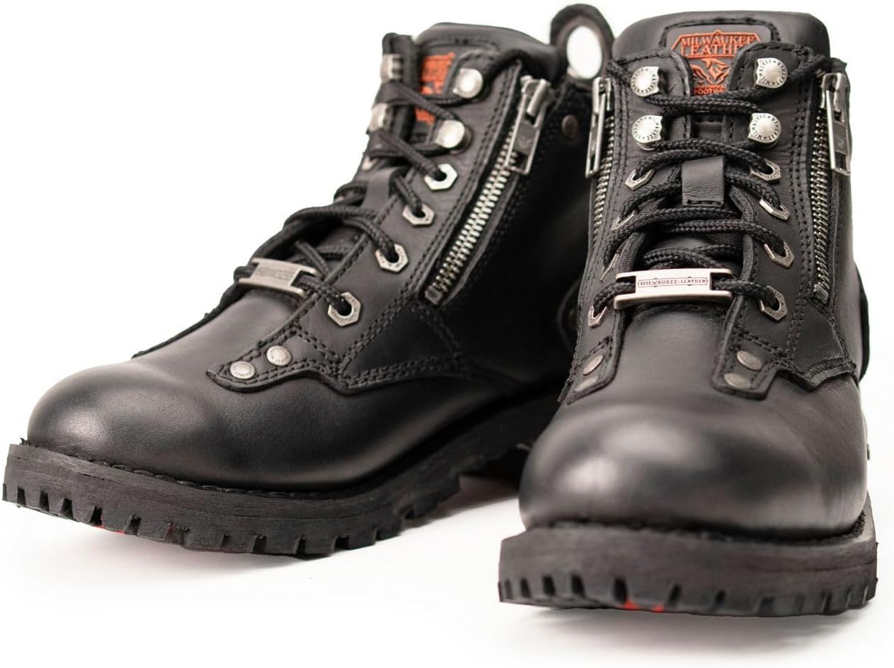 Milwaukee Leather Women's Premium Leather Lace-Up Motorcycle Rider Boots Collection | MBL Features Made of Full Grain Premium 2.2mm Thick Cowhide Leather Lace-Up Design with Side Zipper (Various on Style) Inside Side Zipper Entry for Easy on and off Wear Oil and Acid Resistant Out-Sole Non-Skid and Non-Marking Tread Welt Construction Linings are Moisture Wicking Designed to Work with Your Body’s Temperature Milwaukee Signature Hardware Smart Mask Climate Control Insole with Flex Power Toe Design Milwaukee Leather - Once You Have It, You Love It!
