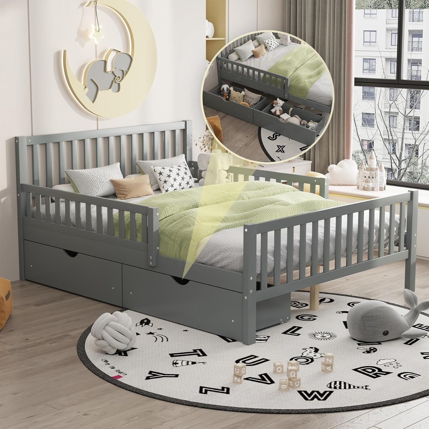 | Included Components | Guardrails on Both Sides, Two Storage Drawers |