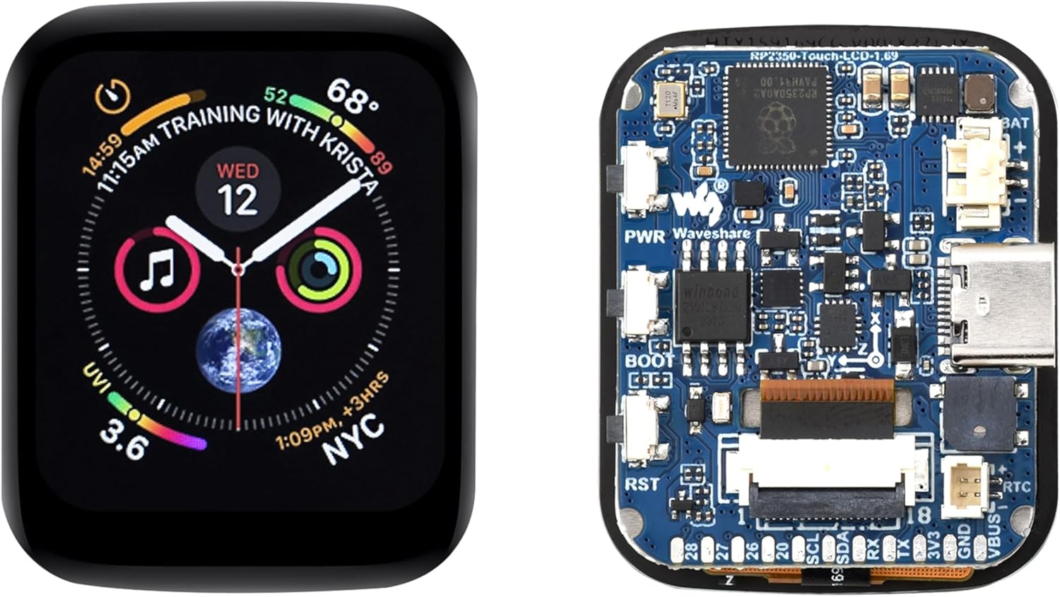 RP2350 Microcontroller Development Board with 1.69inch Touch LCD 240×280 Pixel, Rounded Corners, Dual-Core & Dual-Architecture Design, 16MB Flash, Accelerometer and Gyroscope Sensor,USB Type-C Port