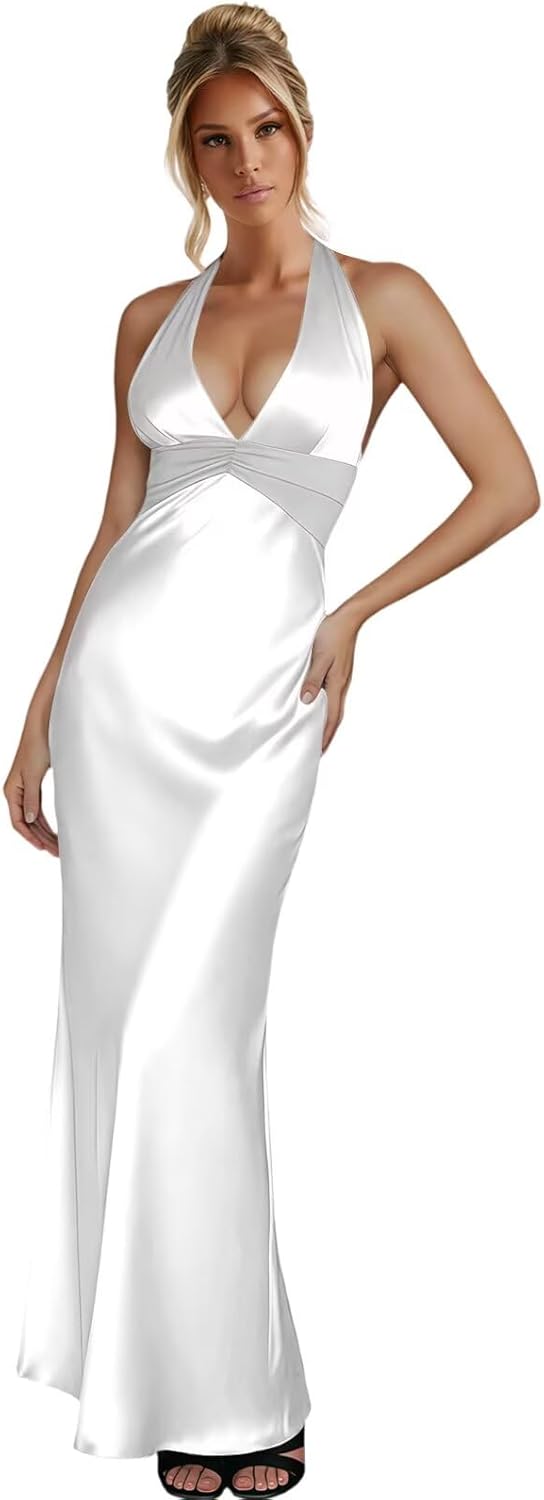 | Embellishment Feature | Halter, Pleates, Satin, V Neck |
